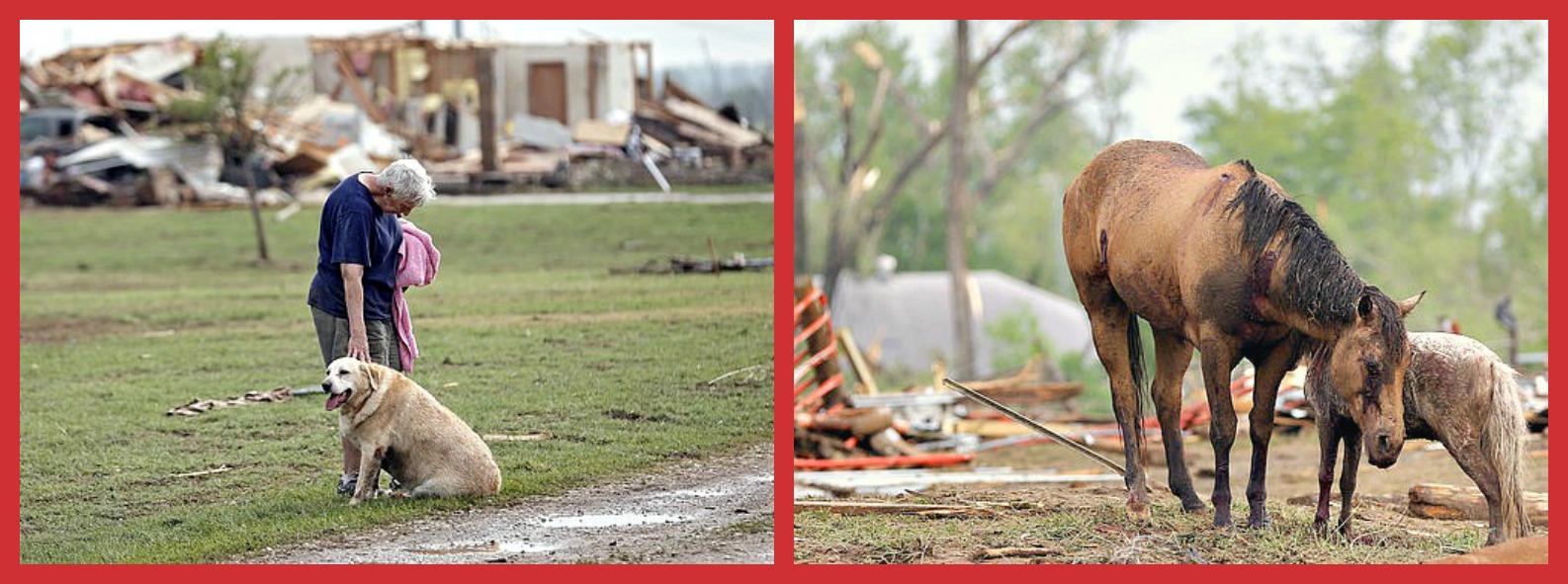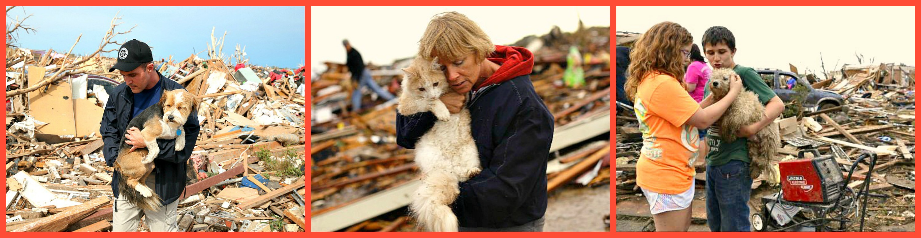 A record-sized tornado plowed through Oklahoma this Monday, leaving death and destruction in its wake.  People, companion animals, farm animals and other animals are now displaced and injured.   Even in the midst of chaos and destruction, humanity finds a way to shine; dozens of agencies are on the scene helping the injured and homeless by collecting food for animals, bringing in search and comfort dogs, and connecting lost companion animals with their people.