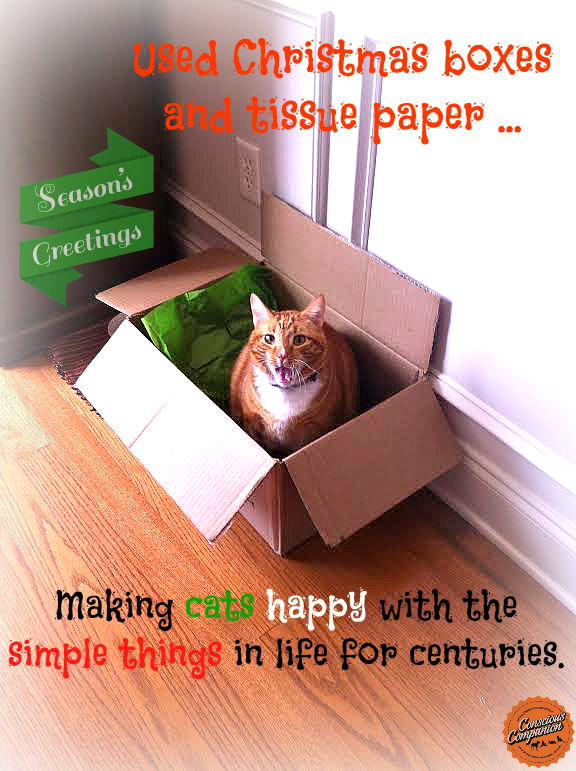 Rather than tossing out all of the tissue paper and boxes after the Christmas commotion, consider offering your feline family member a great box! Giving your cat a box not only helps him/her, but is also a cool way to recycle.