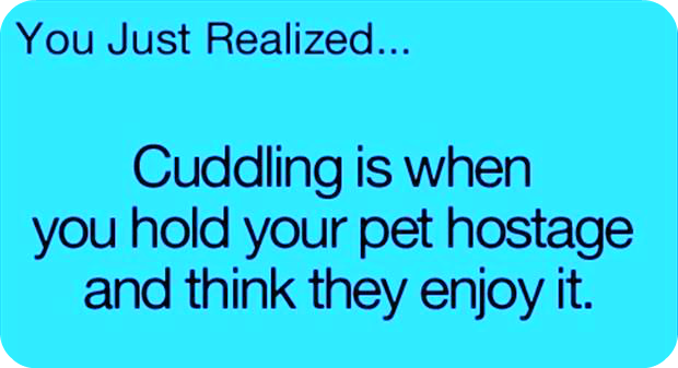 Have someone take a picture of you holding your animal hostage (I mean, hugging and squeezing them). Then look carefully at the expression on their face.