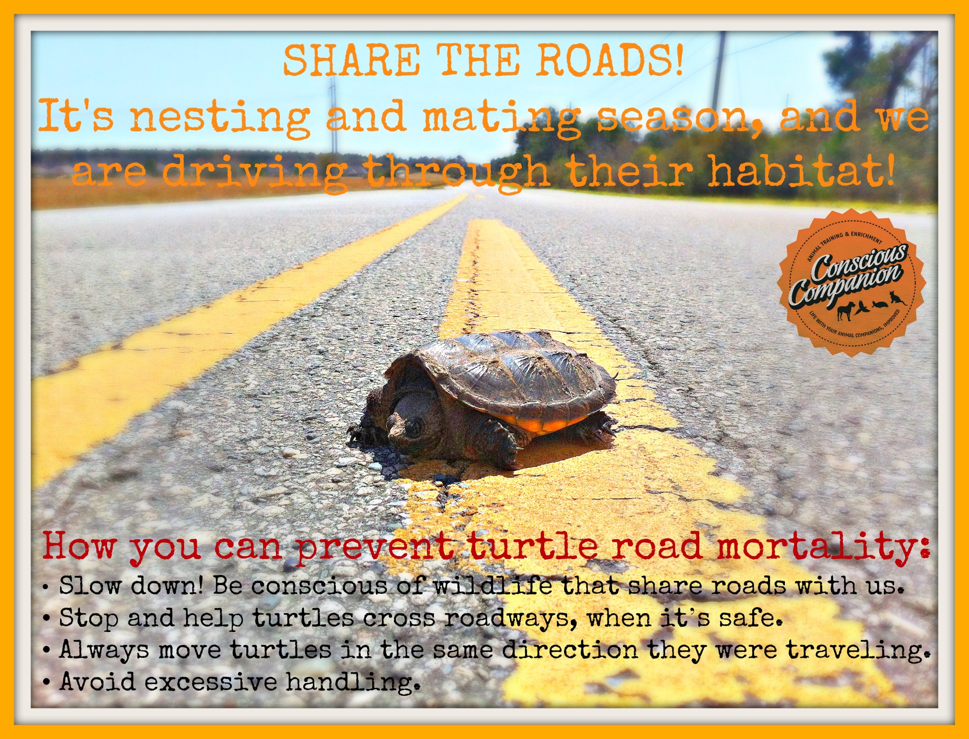 World Turtle Day is May 23, so I wanted to remind everyone to be conscious of these very special animals that share the roads with us!  Where we live, we are surrounded by natural wetlands. But there are highways and roads that also surround these wetlands. This often means that native turtles do not fare well when they need to cross the busy roads.  I have seen far more than my share of injured and crushed turtles in the three years that we have lived here, and every time I find one, my heart breaks.  Many of these turtles are endangered or threatened species. Yet, most people don’t seem to know this, or don’t even care. This is where we come into play!  Helping one turtle across the road can be the difference between life and death for the animal, and for future generations.  Educating our friends and family is how we can save species.
