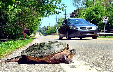 Be a conscious driver and slow down for turtles such as this common snapping turtle!