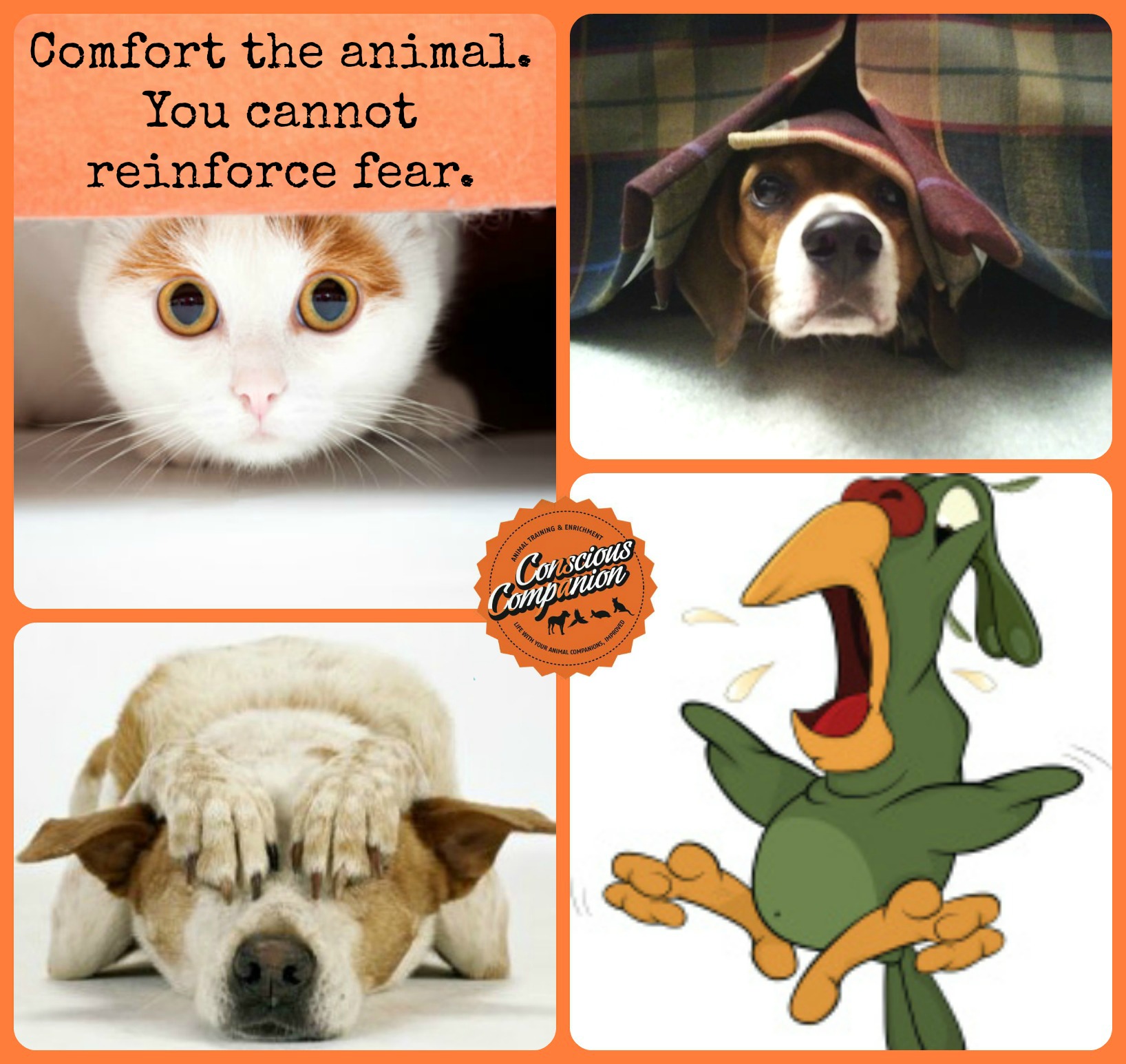 Unfortunately, a lot of people believe this common myth: Don’t comfort an animal when he/she is afraid; you’re only reinforcing their fears.